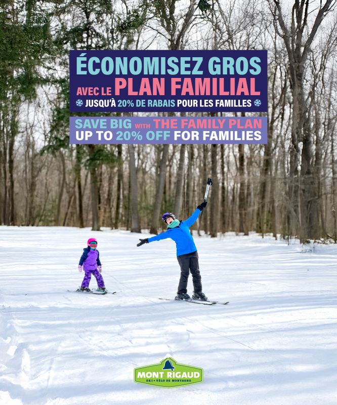 Envie de profiter de l'hiver à fond? Le Plan familial illimité de Mont Rigaud est fait pour vous! Obtenez jusqu'à 20 % de rabais sur les passes de saison Illimitée pour chaque membre de votre famille vivant à la même adresse.