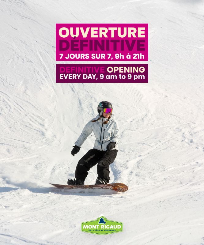Starting this Saturday, December 13, Mont Rigaud kicks off full operations, 7 days a week, from 9 a.m. to 9 p.m.!